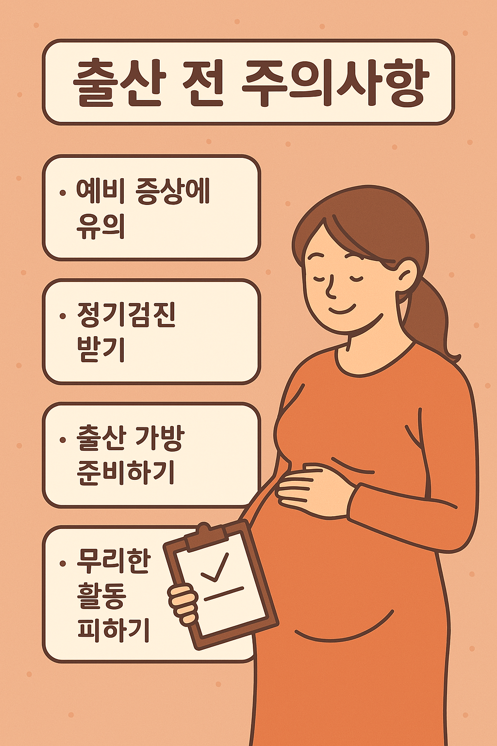 출산은 여성의 인생에서 가장 감동적인 순간 중 하나입니다. 그러나 출산이 가까워질수록 산모는 다양한 신체적, 정신적 변화를 겪게 되며, 이에 따른 철저한 준비가 필요합니다. 본 글에서는 출산 전 반드시 확인해야 할 주의사항을 상세히 안내드릴게요. 건강한 분만을 위한 체크리스트, 주의할 점, 준비물까지 모두 정리해드립니다.